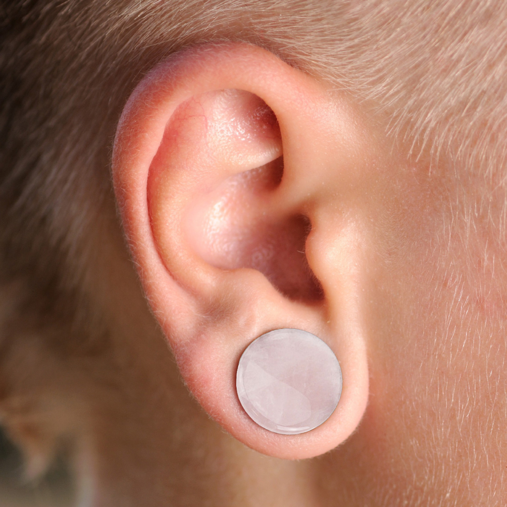 Ce plug est en forme de dôme à l'arrière et possède une boucle d'oreille pour maintenir le bijou dans le trou. C'est aussi un bijou très facile à placer, puisqu'il suffit de l'insérer dans le piercing à l'arrière et de le fixer avec le plug.