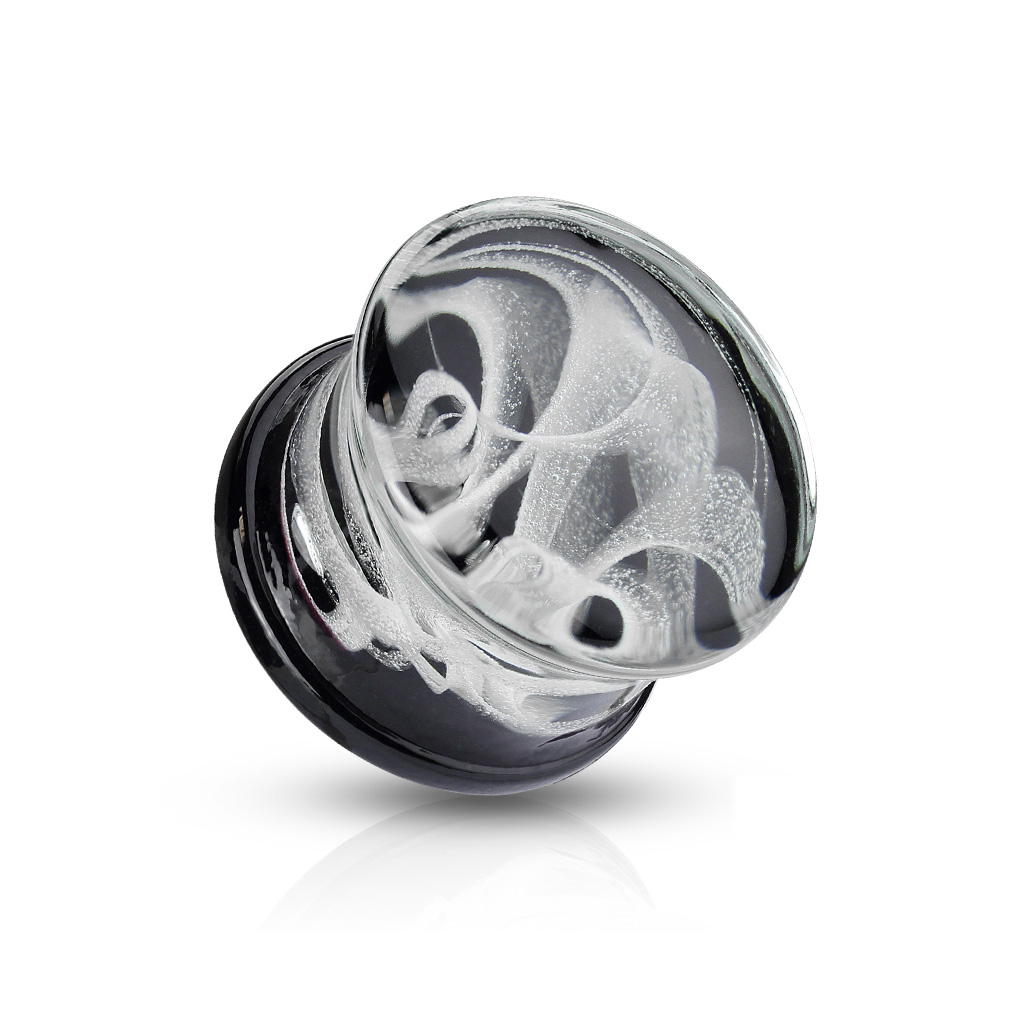 Le bijou est principalement fait de verre transparent, même si derrière c'est noir pour pouvoir voir les tourbillons de fumée a l'intérieur du plug. Ne t'attends pas à recevoir un bloc avec de la vrai fumée vu que c'est seulement un motif. Le motif est cependant différent de plug en plug vu que les tourbillons ne sont pas tous pareils. L'effet rendu est meilleur avec les tailles plus grandes.