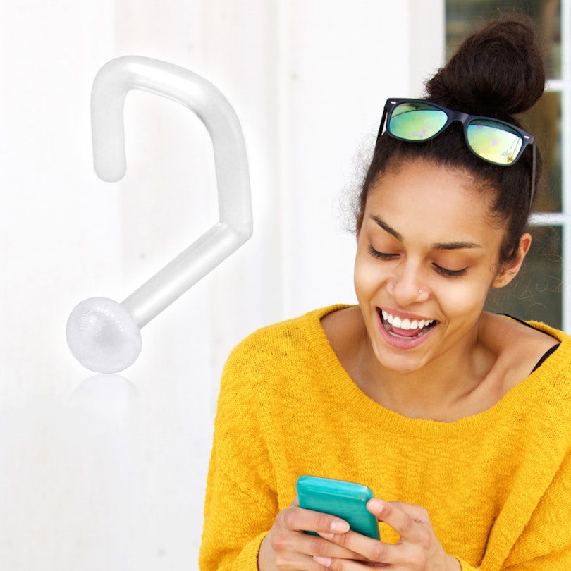 Ce support de bijou pour piercing au nez est en PTFE. Ce type de bijoux est appelé "retainer", et est idéal comme "bijoux au travail". C'est un bijou parfait à porter à certaines occasions, comme au travail, à l'école ou lorsque tu vas prendre un café avec ta grand-mère.