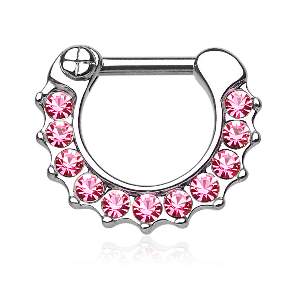 Excellent bijou pour piercing au septum: un bijou classique sans être ennuyeux. Ce bijou est rempli de jolis diamants le long de son bord épais de 3 mm. Il y a un total de 11 pierres brillantes dans ce petit bijou. Cette taille spéciale permet à la lumière de se refléter sous tous les angles, ce qui en fait un bijou unique.