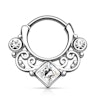 J'ai la version avec les pierres roses et je suis très enthousiasmé ! C'est déjà frappant et grand, mais c'est exactement pour cela que je l'ai acheté. Malheureusement, elle s'est ternie assez vite à un petit endroit, mais la pièce est heureusement cachée dans le nez. Le fermoir était extrêmement serré, donc j'ai dû légèrement plier le piercing pour pouvoir manipuler le clicker confortablement.