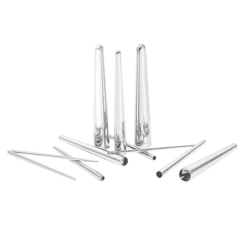 Dans le petit set, il y a des tapers de 1 mm jusqu'à 8 mm. Dans le plus gros pack, il y a des tapers qui vont de 10 mm jusqu'à 20 mm. Tous les tapers ont un petit trou derrière (partie plus épaisse) qui correspond à la taille du bijou. Malheureusement, le taper de 10 mm ressemble plutôt à du 11 mm car le but c'est de le mettre par derrière. Voici les différentes tailles dans chaque pack: