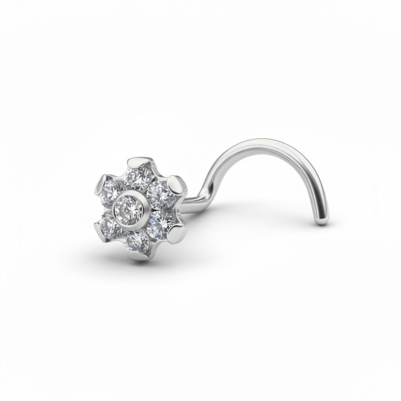 Tu souhaites ajouter un joli détail à ton piercing à la narine ? Il suffisait de demander : ce stud de nez en titane est exactement ce qu'il te faut ! Il possède une fleur, au centre de laquelle se trouve une petite pierre avec un sertissage à griffes, un design qui sublimera au quotidien.