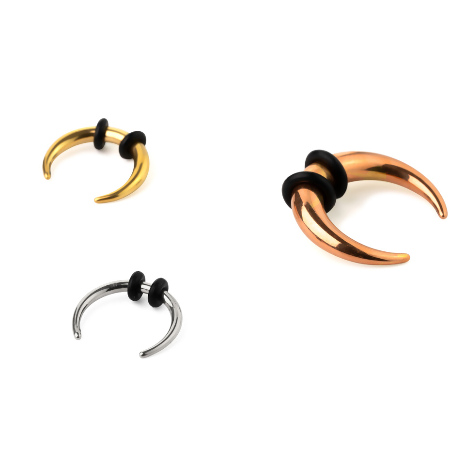 Ce taper est en forme de C. Il est fabriqué en acier chirurgical et est équipé de deux boucles d'oreilles.