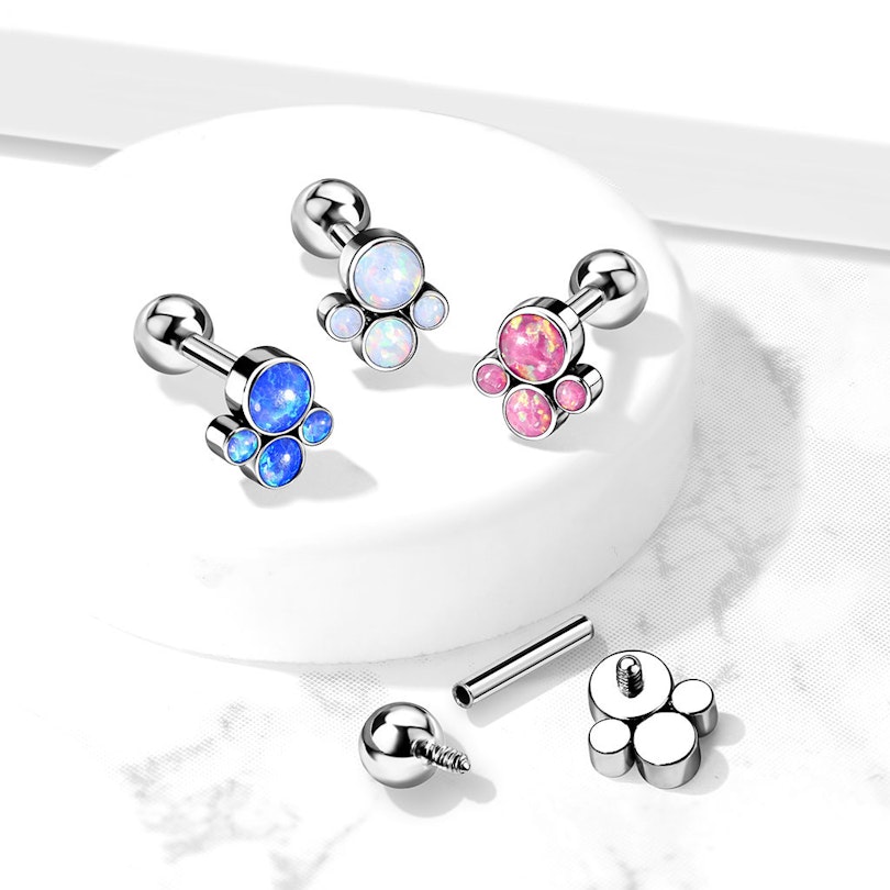 Nom: Tige barbell avec filetage interne en titane et 4 opales