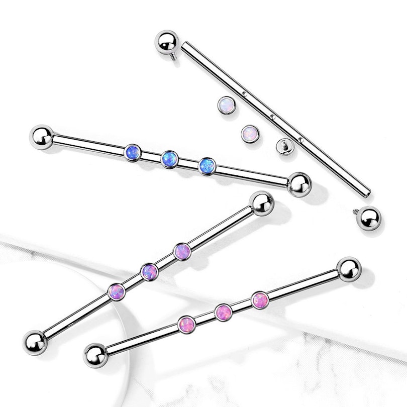 Nom: Tige barbell industrielle avec 3 opales et un filetage interne