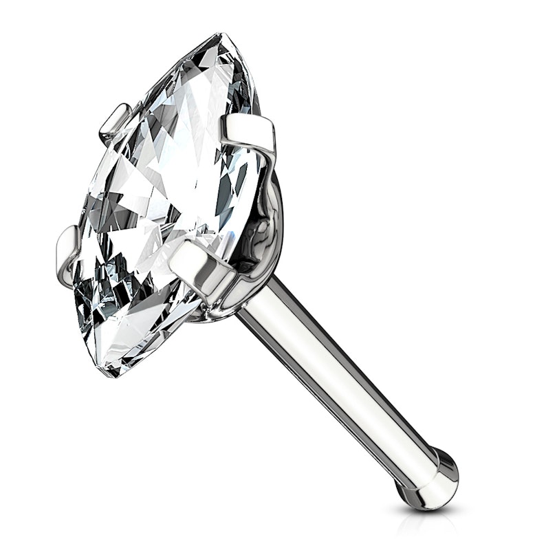 Avec cette tige de nez, tu peux choisir à la fois le style des bijoux, où tu peux choisir entre une pierre carrée et une pierre ovale, et les couleurs des pierres, par exemple, une pierre bleue ou verte. Tu peux également choisir la couleur de la tige, une couleur blanche élégante, ou une édition noire plus brute. Tu auras exactement le bijou que tu souhaites. Notes toutefois que tous les modèles ne sont pas disponibles dans toutes les combinaisons.