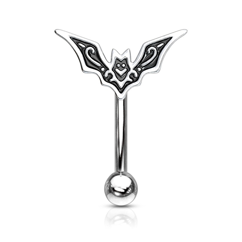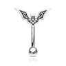 La chauve-souris est en laiton, qui a été revêtu de rhodium oxydé. Le reste des bijoux est en acier chirurgical.