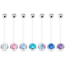 Ce bijou possède une tige qui mesure environ 35 mm de longueur. Elle est en PFTE, un matériau hypoallergénique et souple. La boule inférieure est ornée d'une pierre disponible en plusieurs couleurs.