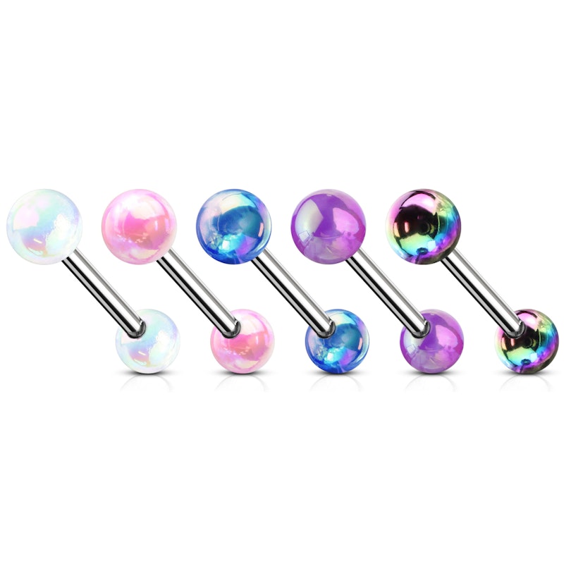 L'intégralité de ce bijou est en acier chirurgical. Aucun revêtement n'a toutefois été appliqué à la tige. Celle-ci est de couleur argentée, ce qui crée un magnifique contraste de couleurs avec toutes les couleurs disponibles pour les boules.