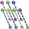 Ce modèle est disponible en 7 combinaisons différentes, dans lesquelles la couleur est la seule chose qui les différencie. Sinon, elles sont 100% identiques, y compris la longueur, l'épaisseur de la tige et la taille des boules. La tige est en acier chirurgical, sur lequel ces couleurs fantastiques ont été appliquées. Les zones recouvertes de la couleur métallique et les pièces découvertes sont ionisées. Une astuce intelligente et rapide qui leur donne une finition complètement différente.