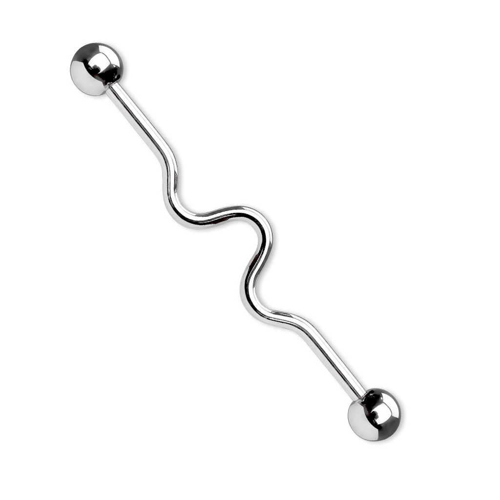 Magnifique bar industriel avec deux ondulations en son centre, disponible en plusieurs couleurs: toutes fabuleuses. Cette tige industrielle est particulièrement belle lorsqu'elle est placée sur l'oreille. Pour la placer, tu dois dévisser les boules aux deux extrémités de la tige et les insérer dans les deux piercings. Une fois placé, il suffira de le sécuriser en tordant à nouveau les boules.