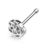 La rose mesure environ 6 mm de diamètre. Ainsi, quand elle est placée sur le nez, tu peux clairement voir et apprécier ses détails. À l'autre extrémité de la tige, il y a une petite boule, légèrement plus grande que le diamètre de la barre. La boule sert de protection pour que la tige ne quitte pas sa place par accident. Ell a la bonne taille pour pouvoir le placer et le retirer du piercing.