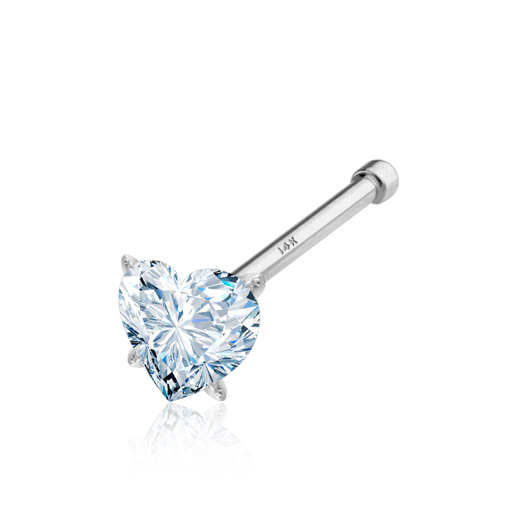 Tige pour le nez en or 14 carats avec un cœur de brillant