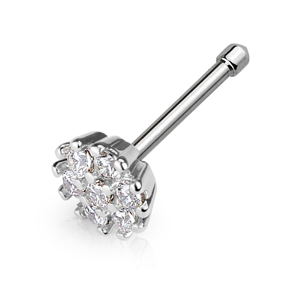 Cette tige de nez est parfaite tu recherches est un look à la fois féminin et original. Ce bijou est un peu plus gros que les autres puisqu'il mesure 6 mm de diamètre et est composé de diamants qui représentent les pétales et le cœur d'une fleur. Le design de la structure empêche la pierre de tomber. Nous vous garantissons que tu apprécieras ce bijou au style féminin pendant très longtemps.