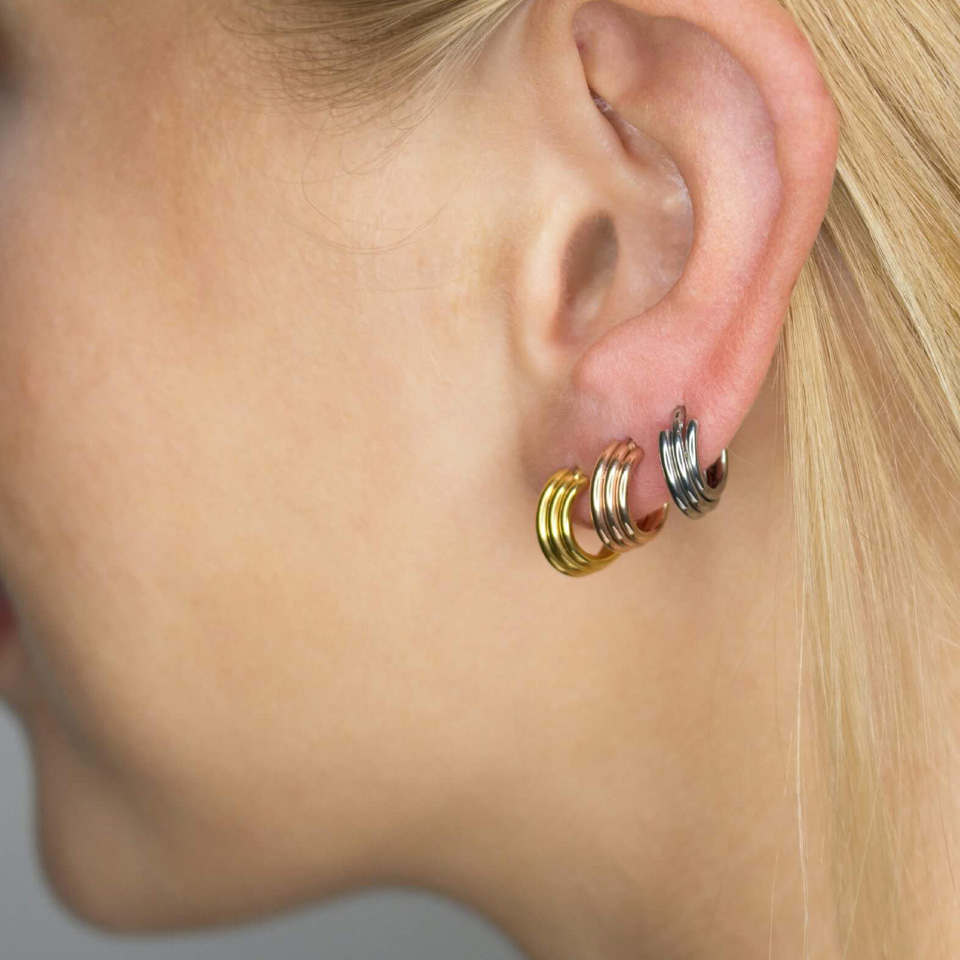 Cette trio simple mais pourtant efficace m'a séduite. On dirait vraiment trois bagues distinctes, et cela avec seulement un trou dans l'oreille ! Combinable avec n'importe quel autre bijou. Grâce à sa forme particulière, les bagues reposent bien sur le lobe de l'oreille. Chère équipe Bodymod, merci aussi en titane !0