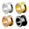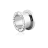 Beau tunnel avec brillant sur le bord, scellé avec une couche invisible qui assure que chaque brillant reste en place. Le fil d'acier chirurgical apporte solidité et sécurité à ce bijou, qui est également très agréable à porter. Le système d'ouverture et de fermeture est extrêmement simple, tu le feras même les yeux fermés.