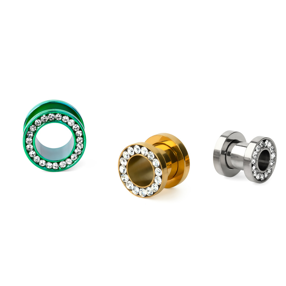 Achat super !!! C'est vraiment un très beau bijou pour orner l'oreille. Les diamants rendent le tunnel encore plus féminin et ensemble avec la surface en acier chirurgical, cela a l'air très élégant. Je peux vraiment le recommander !