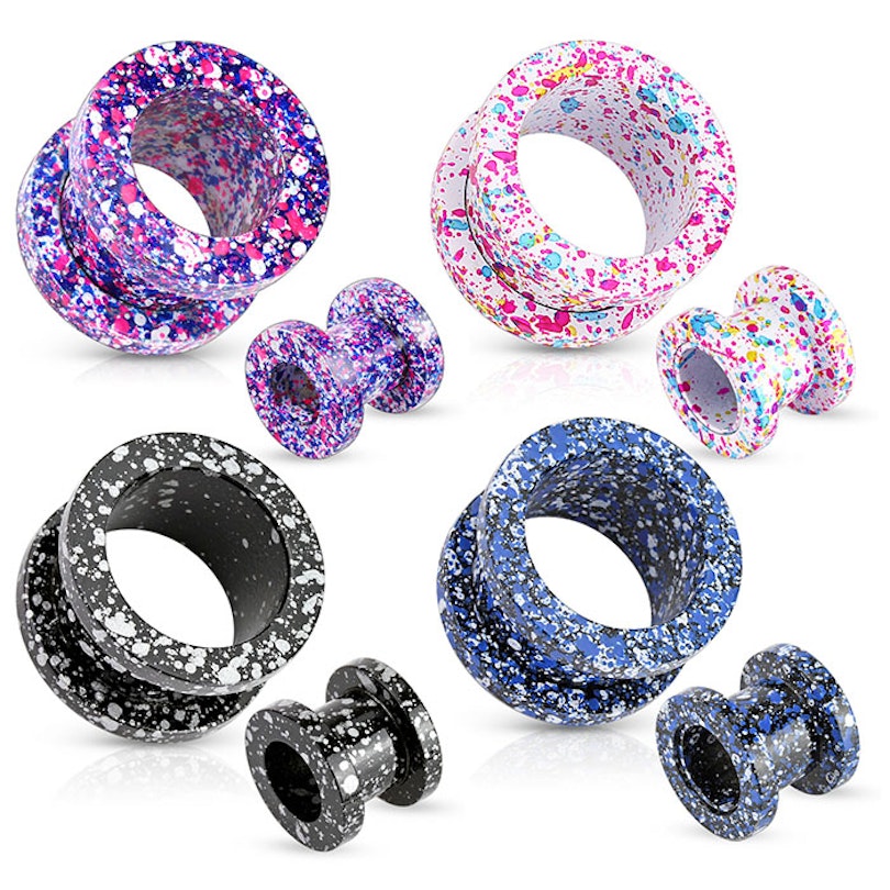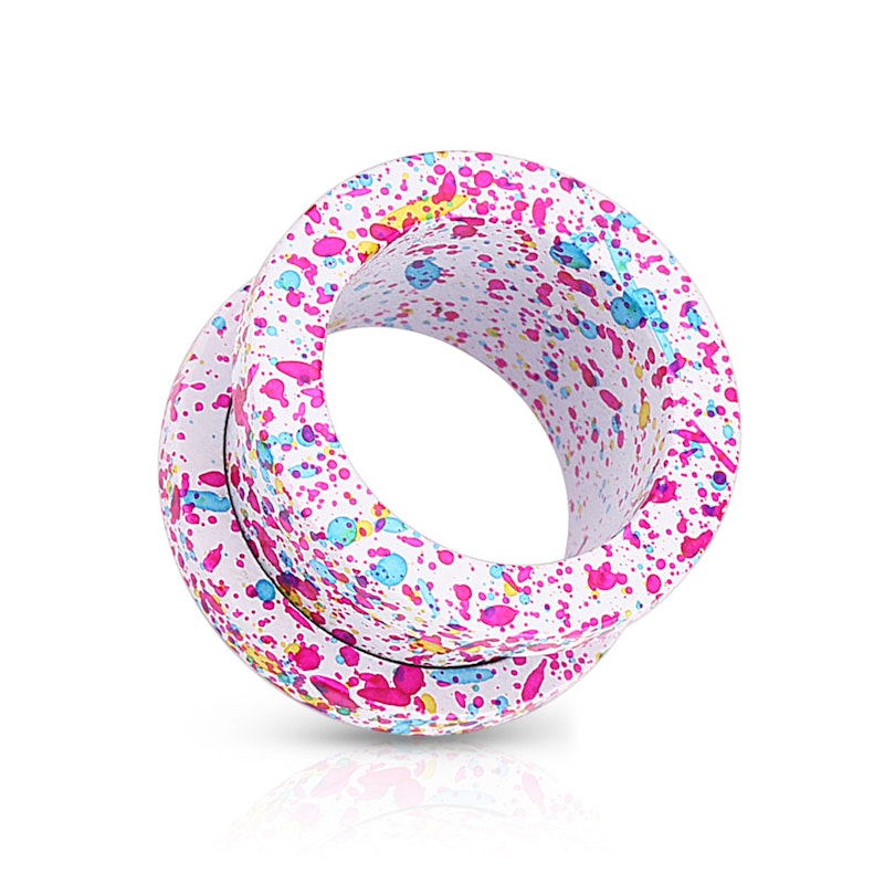 Voici le tunnel idéal pour toi, si tu aimes porter des couleurs vives dans tes étirements. Il est fabriqué en acier chirurgical et est disponible dans de nombreuses tailles, de 3 mm à 16 mm. Le design de ce beau bijou est inspiré par les éclaboussures que provoquent les pinceaux lors du détachement de sa peinture. Toutes les combinaisons de couleurs sont très fraîches et différentes entre elles.