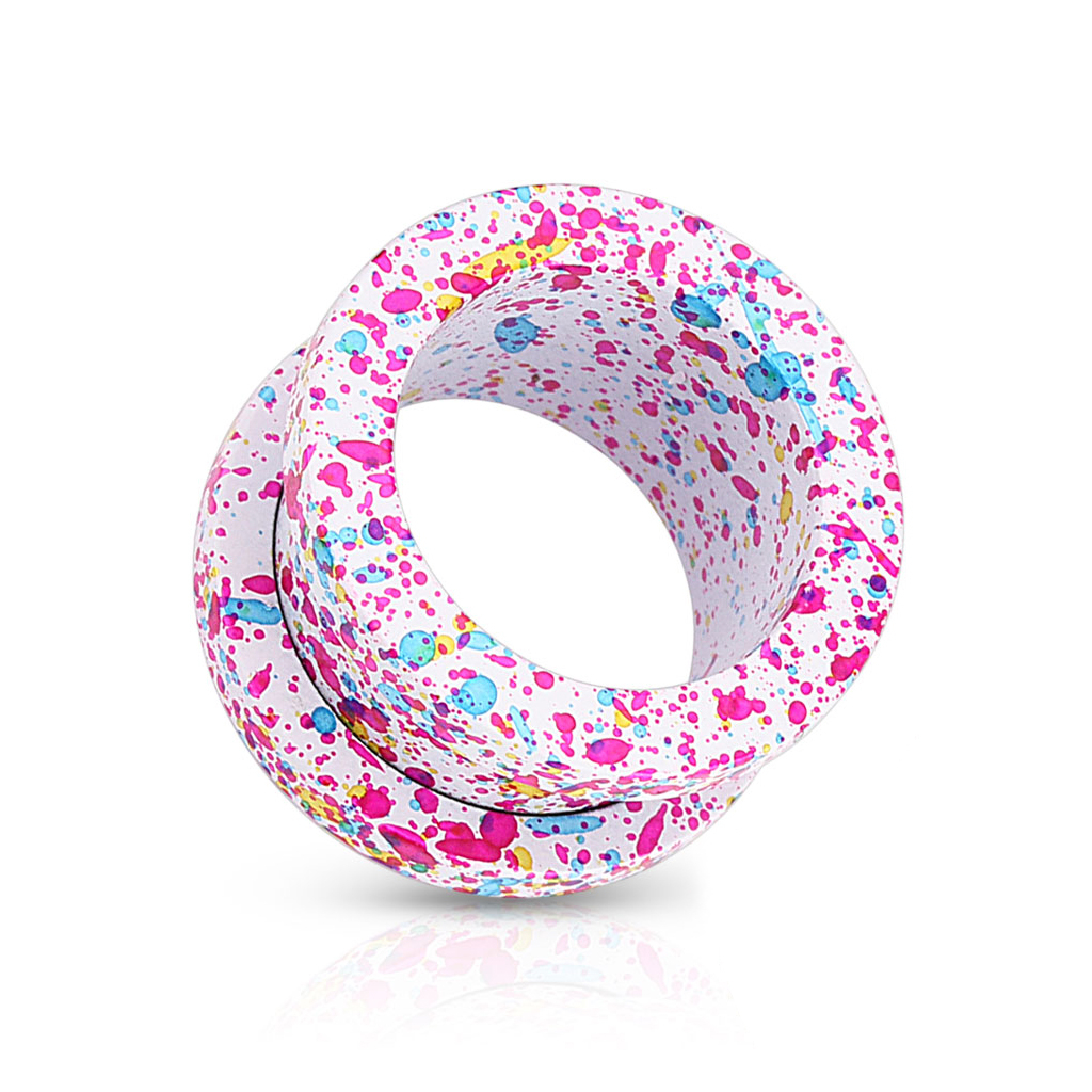 Voici le tunnel idéal pour toi, si tu aimes porter des couleurs vives dans tes étirements. Il est fabriqué en acier chirurgical et est disponible dans de nombreuses tailles, de 3 mm à 16 mm. Le design de ce beau bijou est inspiré par les éclaboussures que provoquent les pinceaux lors du détachement de sa peinture. Toutes les combinaisons de couleurs sont très fraîches et différentes entre elles.
