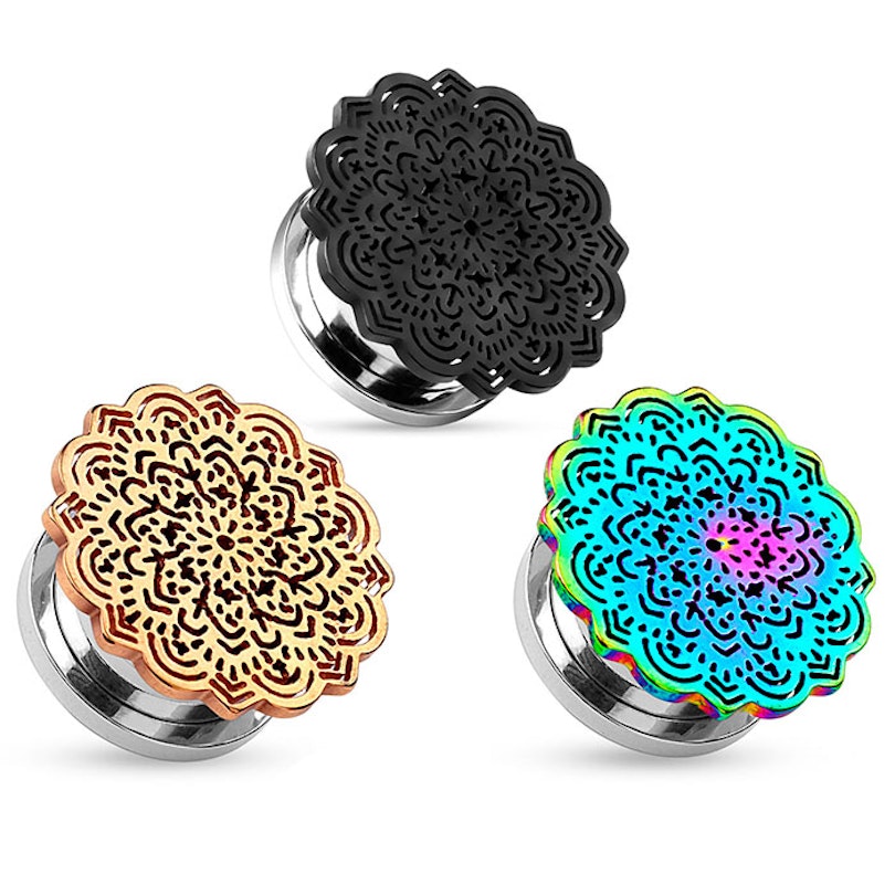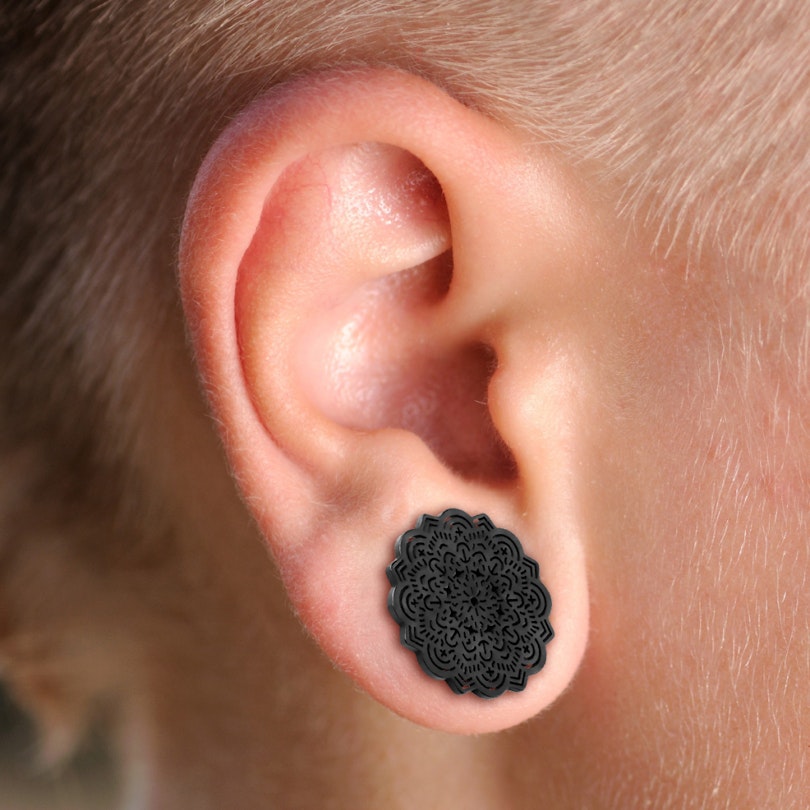 Voici un beau et détaillé mandala que tu peux choisir en plusieurs couleurs, certaines classiques mais aussi très vives. Lorsque le bijou est placé dans la dilatation de l'oreille, le mandala est la seule chose que l'on puisse voir. Le dos du bijou est fabriqué en acier chirurgical et peut être dévissé afin de le placer plus facilement dans le trou.