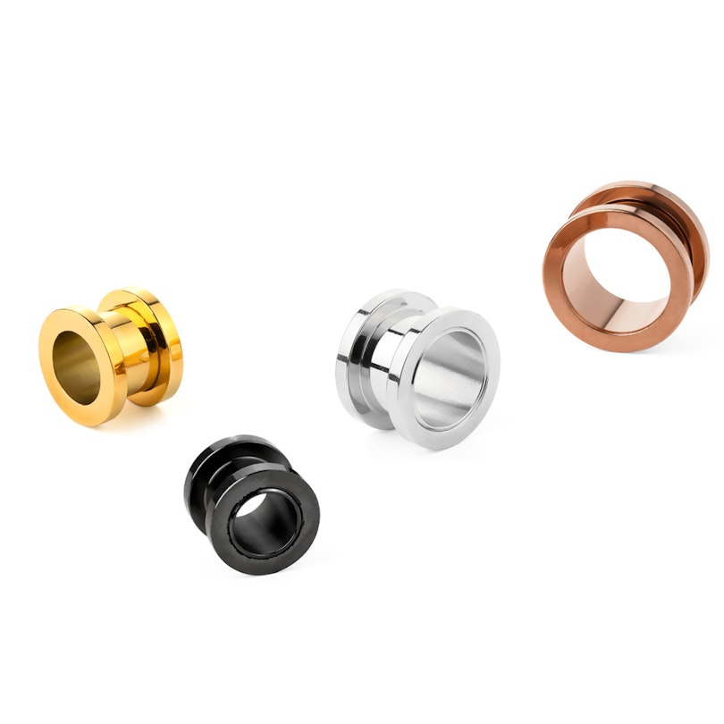 La principale caractéristique des tunnels est que tu peux voir à travers eux. Malheureusement, ce n'est pas possible dans les modèles plus petits. Les tunnels d'un calibre de 16g et 14g (1,2 mm et 1,6 mm) ne sont pas creux.