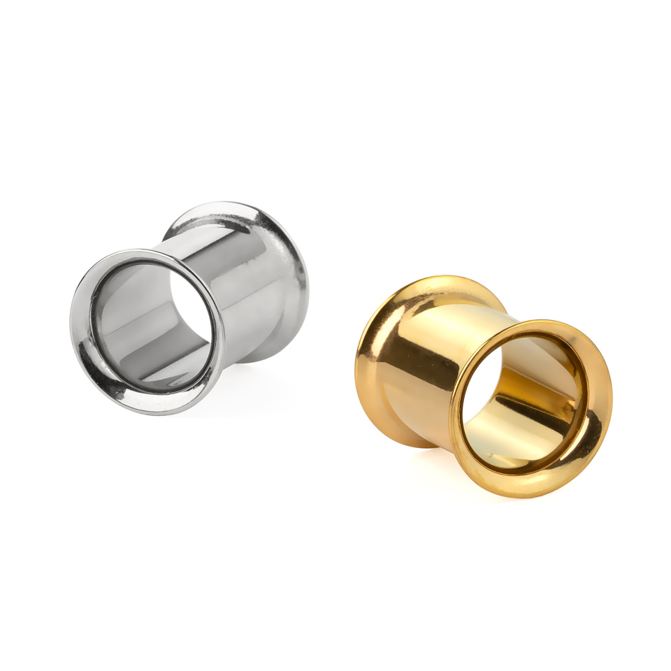 Voici un très beau tunnel, dans un matériau sûr, l'acier chirurgical. Nous appelons ce modèle double flamme, ce qui veut dire que les deux bords aux extrémités sont surélevés. Cela veut aussi dire que le bijou est très solide lorsqu'il est mis dans ton piercing à l'oreille et ne risque pas de tomber. Tu peux choisir une couleur classique comme le noir ou le brillant. Le tunnel brillant donne un look tout simple alors que le noir donne est un petit peu plus voilant mais est tout de même très simple dans son apparence.