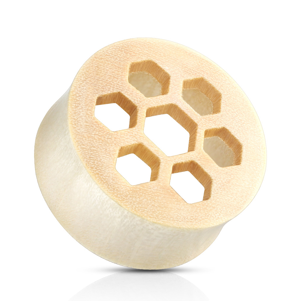 Le collier est décoré d'un motif hexagonal perforé. La conception pourrait facilement rappeler un nid d'abeille que les abeilles font. Ce tunnel n'est pas entièrement destiné aux débutants en étirement. Les tailles commencent à partir de 10 mm. et jusqu'à 25 mm. de diamètre. Donc, si tu es débutant, c'est parfait pour toi.