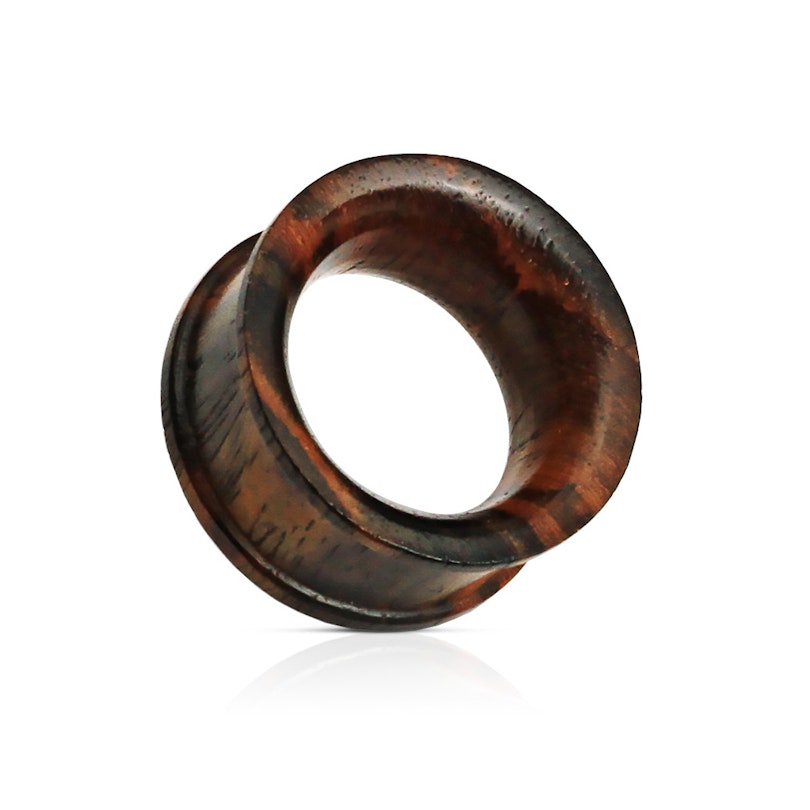 Ce tunnel est en bois de rose et ses bords sont courbés vers l’extérieur, de sorte qu’il reste parfaitement attaché à ton piercing. La surface en contact avec ta peau est plate, tandis que la surface intérieure que tu verras lorsque tu porteras le tunnel sera concave.