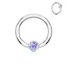 Cet anneau ressemble à la plupart des anneaux de piercings ordinaires. La seule différence est la balle elle-même, qui n'est pas ronde mais cylindrique. Cela donne à la pierre d'opale assise à l'avant un aspect légèrement plat. Le cylindre est plat à l'arrière et sera donc principalement posé à plat sur la peau et donc dirigé vers l'extérieur.