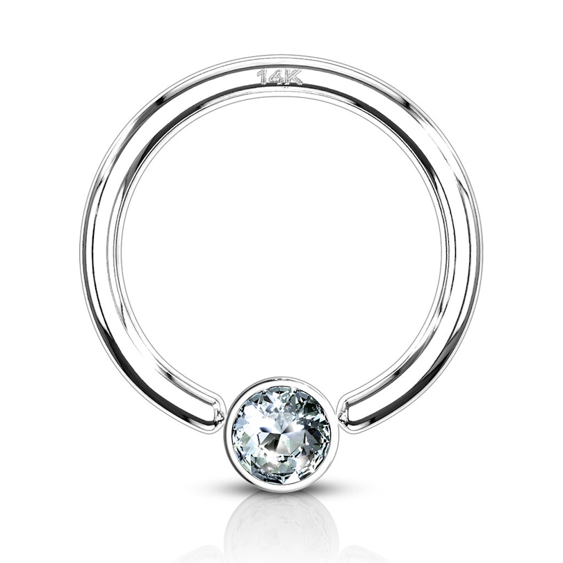 Nom: Anneau captif en or 14 carats avec une pierre sertie