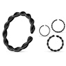 Pour ouvrir et fermer les extrémités de ce bijou, il te suffit de les tordre légèrement. Nous te conseillons toutefois de ne le faire que lorsque tu insères et retires ton bijou afin d'éviter qu'il ne se déforme. Ce modèle est disponible en trois couleurs différentes : argent, or et noir. Tu peux également choisir le diamètre ainsi que l'épaisseur du fil (jusqu'à 1,6 mm).