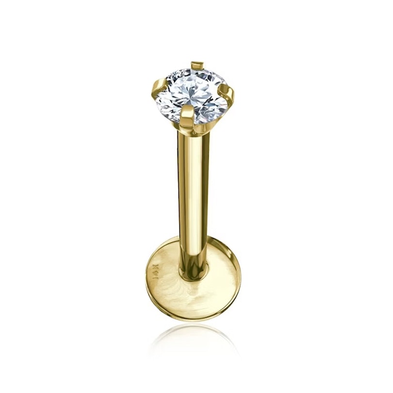 Nom: Labret en or 14 carats avec un filetage interne et pierre