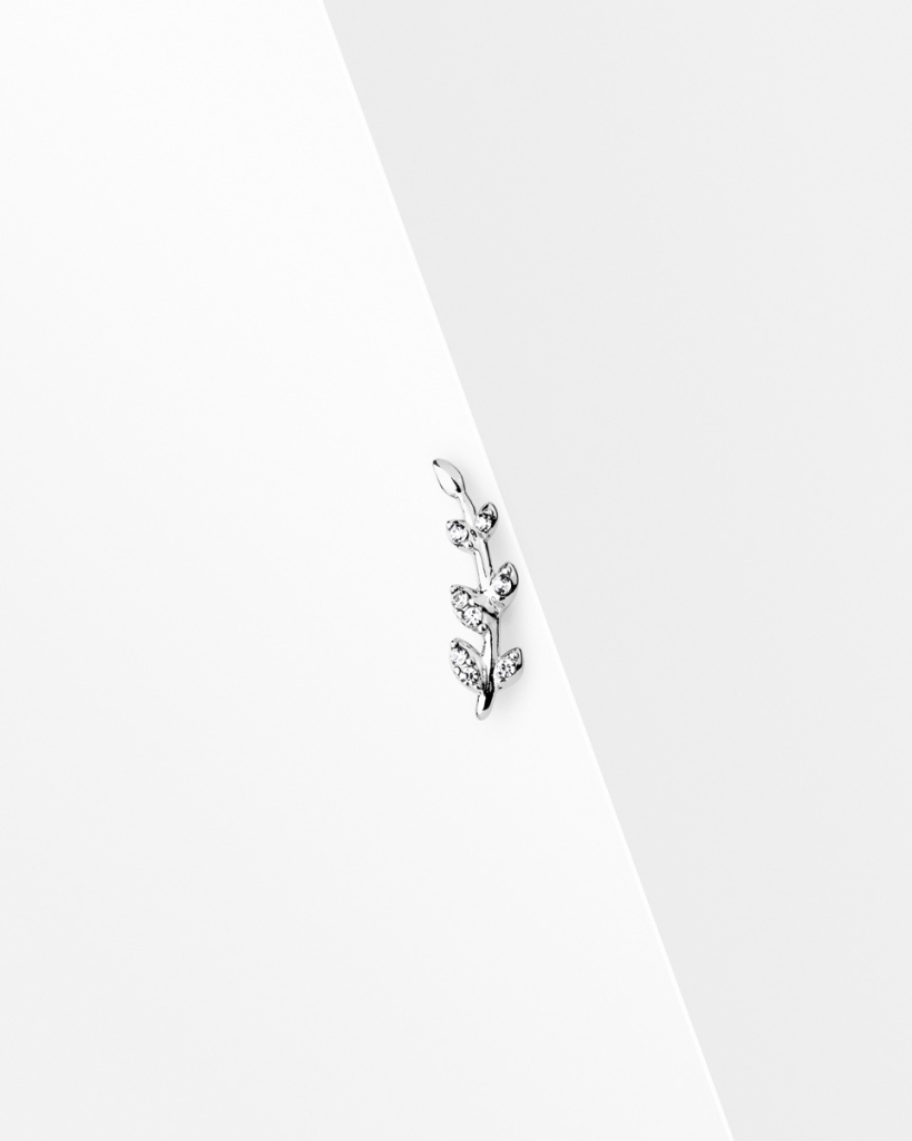Piercing pour l'oreille avec feuilles ornées de pierres