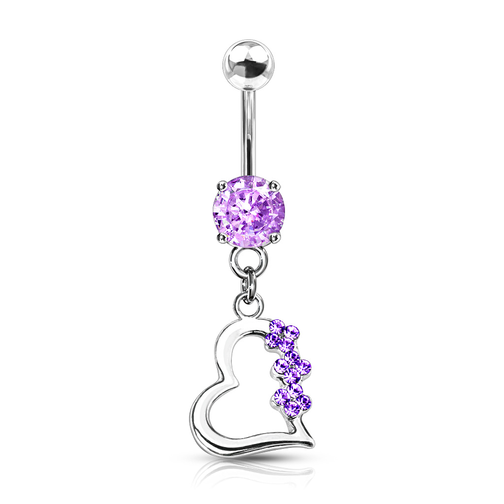 Piercing pour le nombril en titane avec cœur et pierre.