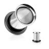 Tunnel tres simple en acier chirurgical avec un anneau en forme de O pour ceux qui veulent un style ou un look plus simple. Ce tunnel est extremement fin et sa coupe est legere et tres comfortable meme dans les plus grandes tailles. C'est aussi super simple de le mettre dans l'oreille. Cela vient avec deux anneaux en forme de O pour mettre derriere le bijou pour que cela tienne le bijou correctement en place.