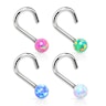 Voici une vis à nez pratique avec une belle opale. Cette petite opale de 2 mm en forme de boule est disponible en quatre couleurs : blanc, rose, bleu et vert. Chaque pierre est unique car c'est une pierre qui a été extraite directement de la nature. On dit que l'opale est source d'inspiration, de paix intérieure et d'amour. Donc, si sa beauté ne te suffit pas, il existe de nombreuses autres raisons pour lesquelles tu porteras ce bijou.