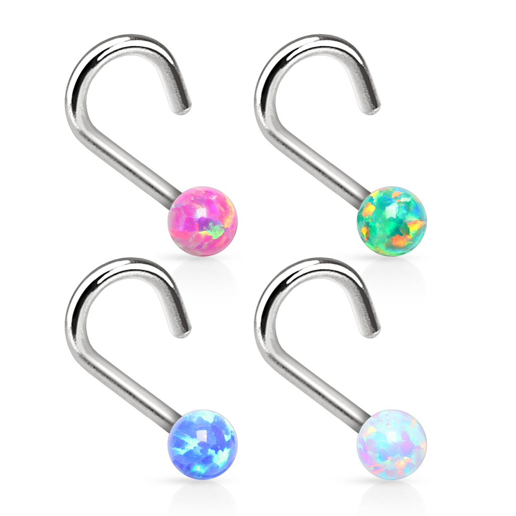 Voici une vis à nez pratique avec une belle opale. Cette petite opale de 2 mm en forme de boule est disponible en quatre couleurs : blanc, rose, bleu et vert. Chaque pierre est unique car c'est une pierre qui a été extraite directement de la nature. On dit que l'opale est source d'inspiration, de paix intérieure et d'amour. Donc, si sa beauté ne te suffit pas, il existe de nombreuses autres raisons pour lesquelles tu porteras ce bijou.