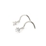 Les bijoux font 0,8 mm. ou 1,0 mm. d'épaisseur. Tout dépend de l'épaisseur du trou qui est percé dans ton nez. Tu choisis également la taille de la pierre : 2,0 mm. ou 2.5 mm pour la grosse pierre à l'avant. La pierre à l'avant est attachée avec de petites pinces pour qu'elle ne puisse pas tomber. Il y a quatre grappins au total qui maintiennent bien la pierre en place. Par conséquent, aucune colle n'a été utilisée pour monter cette pierre.